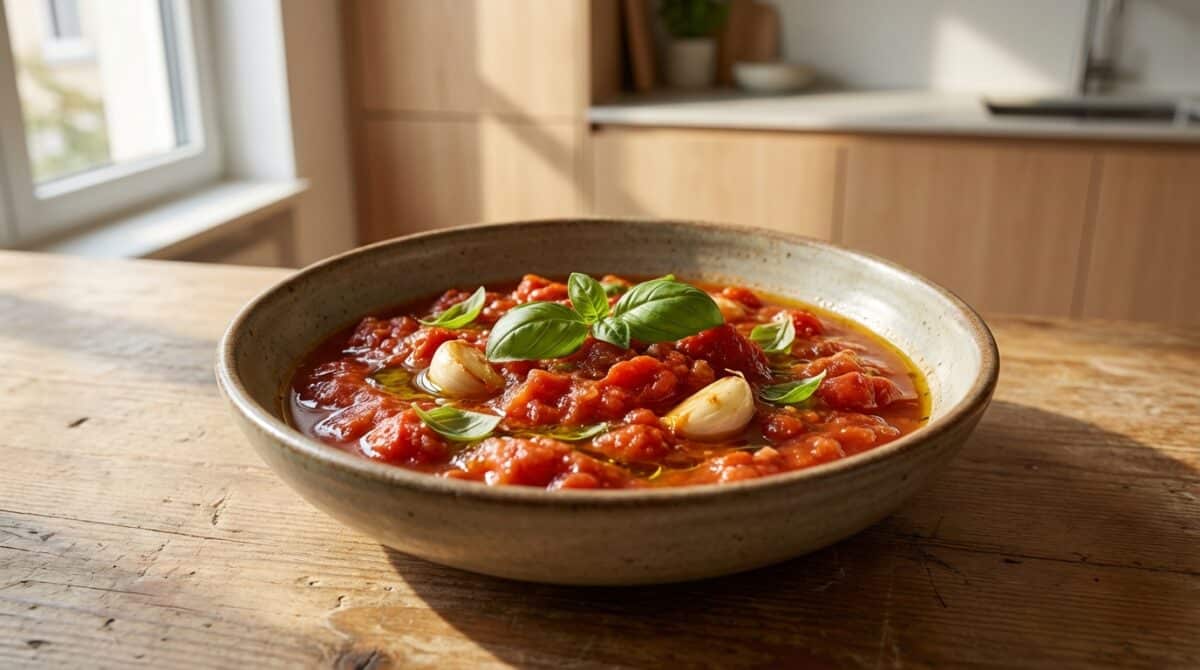 Frische Tomaten oder eine gute Dose stückige Tomaten sind das Herzstück der Sauce. Sie bringen die fruchtige Säure und Süße, die jede Pasta braucht. Knoblauch darf dabei nicht fehlen, er gibt der Sauce den typischen italienischen Kick.
