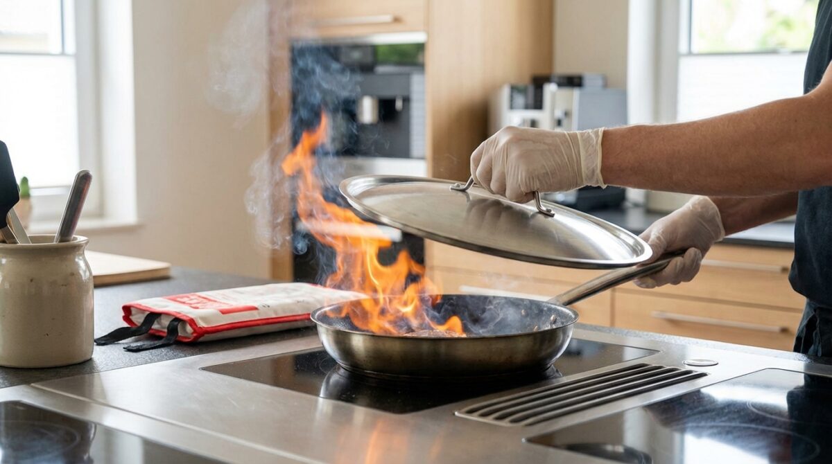 Fettbrand in der Küche: “Niemals Wasser nutzen!”, der eine lebensrettende Handgriff