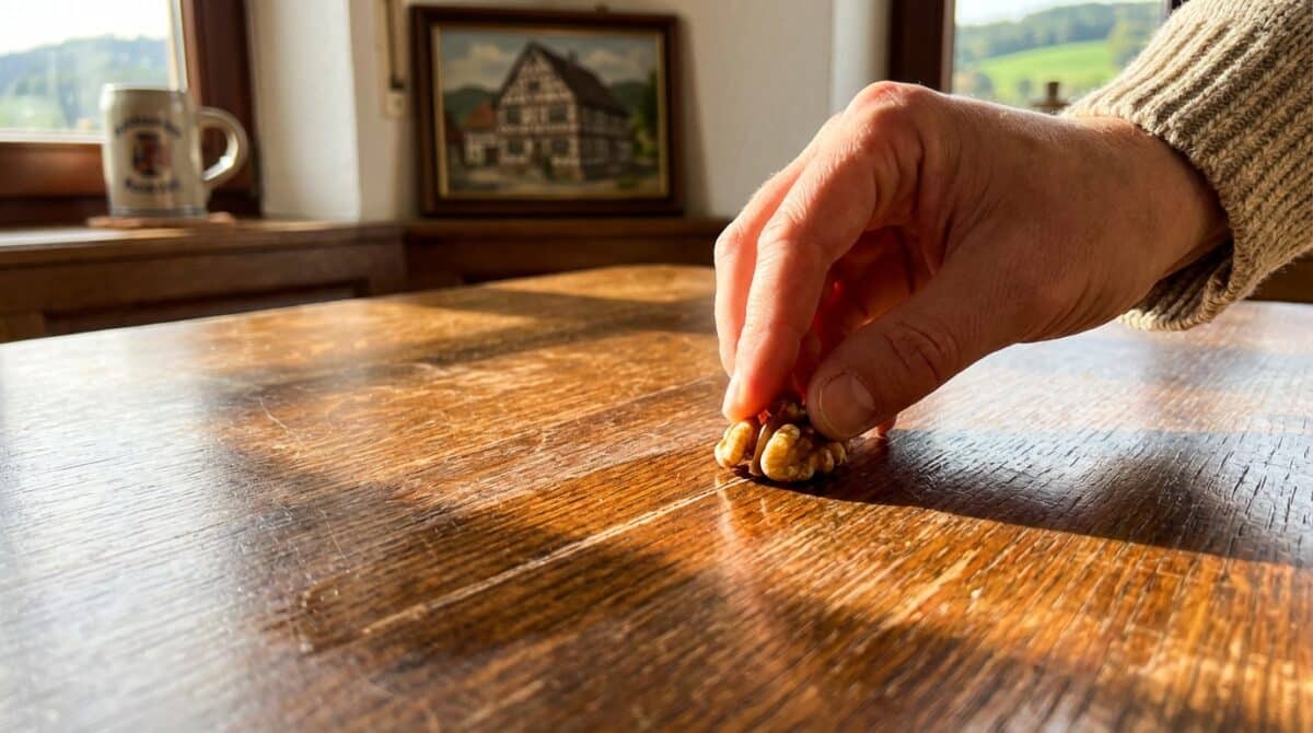 Walnüsse sind mehr als nur leckerer Snack. Die natürlichen Öle darin reparieren kleine Kratzer auf Holzmöbeln kinderleicht. Ein uralter Trick, der 2026 noch immer funktioniert und Ihre Möbel wieder strahlen lässt.